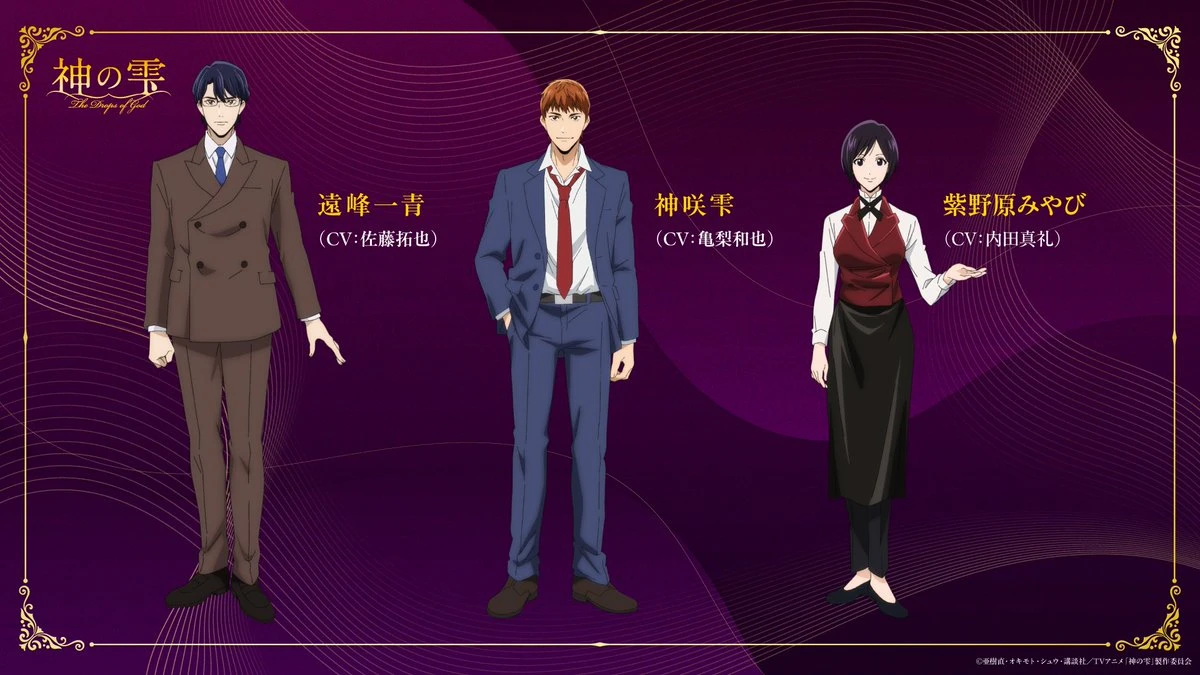 토미네 잇세 CV. 사토 타쿠야 / 칸자키 시즈쿠 CV. 카메나시 카즈야 / 시노하라 미야비 CV. 우치다 마아야