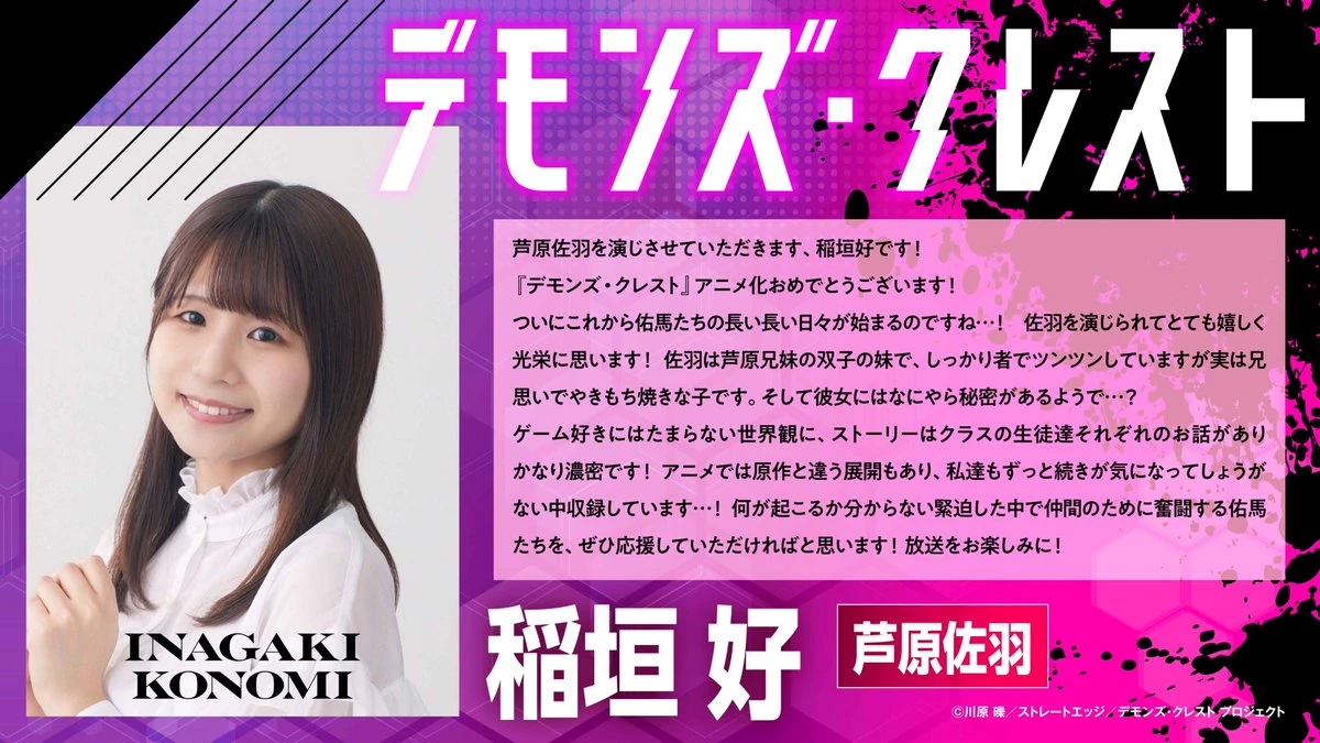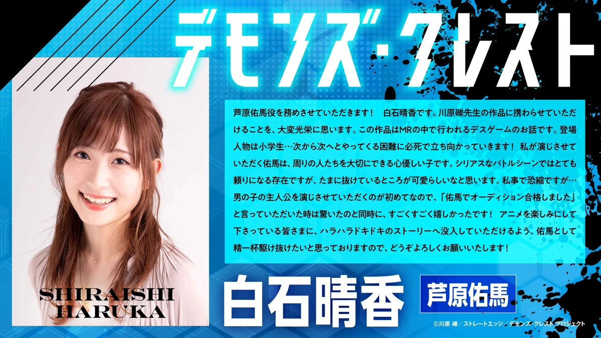 애니메이션 「데몬즈 크레스트」 티저 PV, 티저 비주얼, 캐스트 공개 By 관리자2 2026년 03월 26일 13:07 티저 비주얼 티저 PV 아시하라 유마 CV. 시라이시 하루카 아시하라 사와 CV. 이나가키 코노미 원작 : 카와하라 레키캐릭터 원안 : 호리구치 유키코애니메이션 제작 : Production I.G총감독 : 우시로 신지감독 : 코마야 켄이치로시리즈 구성 : 우메하라 에이지방영 시기 : 2026년 ▶ 공식트위터 ▶ 공식사이트 Tags데몬즈 크레스트 관련 정보 26.04.04 최신 애니메이션 정보 애니메이션 2026년 04월 05일 21:51 「쓰레기 용사」메인 PV 제3탄, 메인 비주얼 제2탄, 추가 캐스트 등 공개 애니메이션 2026년 04월 05일 17:09 「일본삼국」 예고 영상 제3탄, 스페셜 비주얼, 추가 캐스트, 엔딩 공개 애니메이션 2026년 04월 02일 10:52 극장판 「러브 라이브! 하스노소라 여학원 스쿨 아이돌 클럽 Bloom Garden Party」 음악 예고 영상 공개 애니메이션 2026년 04월 02일 10:43 「사랑해 게임을 끝내고 싶어」 본 PV 공개 애니메이션 2026년 04월 02일 10:31 「니디 걸 오버도즈」SECRET.PV, 본 비주얼 공개 애니메이션 2026년 04월 02일 10:25 25.12.05 최신 애니메이션 정보 애니메이션 2025년 12월 06일 12:17 댓글 쓰기 대댓글 취소 첫 댓글 작성시 관리자의 승인이 필요하며 부적절한 내용이나 심한 욕설 등 부적절한 댓글은 삭제처리될수있습니다. Please enter your comment! 닉네임 Please enter your name here Email: You have entered an incorrect email address! Please enter your email address here Website: 닉네임이 다음번에도 저