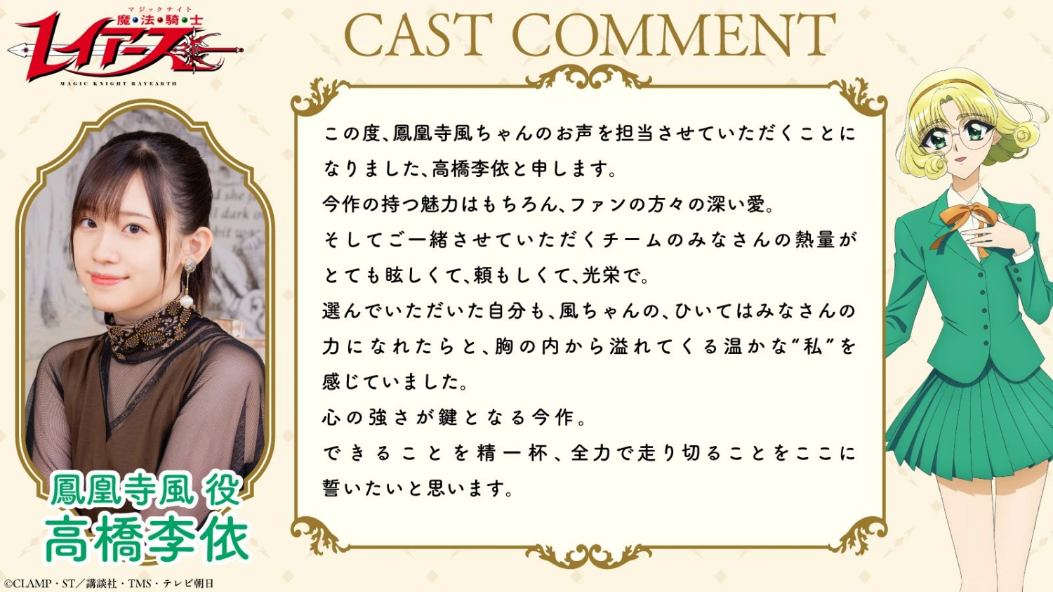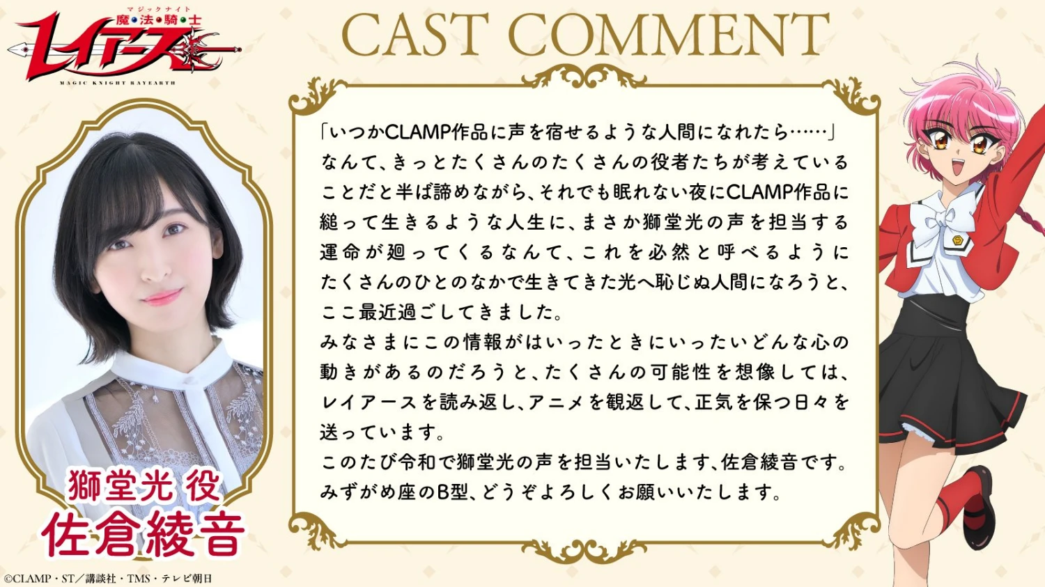 애니메이션 「마법기사 레이어스」 티저 PV, 키 비주얼, 캐스트 공개 By 관리자2 2026년 03월 29일 10:56 키 비주얼 티저 PV 시도우 히카루 CV. 사쿠라 아야네 류자키 우미 CV. 오오쿠보 루미 호우오우지 후 CV. 타카하시 리에 원작 : CLAMP애니메이션 제작 : E&H PRODUCTION감독 : 미우라 유이시리즈 구성 : 무라코시 시게루캐릭터 디자인 : 와타나베 사토미방영 시기 : 2026년 10월 ▶ 공식트위터 ▶ 공식사이트 Tags마법기사 레이어스 관련 정보 「유치원 WARS」 피로 PV, 티저 비주얼, 추가 캐스트 공개 애니메이션 2026년 03월 30일 18:50 「극장판 어둠의 실력자가 되고 싶어서! 잔향편」 특보 제2탄, 티저 비주얼 공개 애니메이션 2026년 03월 30일 18:42 「히로인? 성녀? 아니요, 올 워크스 메이드 입니다! (자랑)」 티저 PV, 추가 캐스트 공개 애니메이션 2026년 03월 30일 18:33 「정반대의 너와 나」 TV 애니메이션 2기 7월 방송 결정 애니메이션 2026년 03월 30일 18:26 「이세계 유유자적 농가 2」 PV 제2탄, 메인 비주얼, 추가 캐스트 공개 애니메이션 2026년 03월 30일 18:20 「바키도」 2쿨 티저 PV, 티저 비주얼 공개 애니메이션 2026년 03월 30일 17:50 「마법기사 레이어스」 ‘시도우 히카루’, ‘류자키 우미’, ‘호우오우지 후’ 스케일 피규어 발매 결정 캐릭터 프라모델 2026년 03월 27일 15:30 25.10.20 최신 애니메이션 정보 애니메이션 2025년 10월 21일 09:51 TV 애니메이션 「마법기사 레이어스」 방송 30주년 기념 신 애니메이션화 결정 애니메이션 2024년 07월 03일 01:02 댓글 쓰기 대댓글 취소 첫 댓글 작성시 관리자의 승인이 필요하며 부적절한 내용이나 심한 욕설 등 부적절한 댓글은 삭제처리될수있습니다. Please enter your comment! 닉네임 Please enter your name here Email: You have entered an incorrect email address! Please enter your email address here Website: 닉네임이 다음번에도 저
