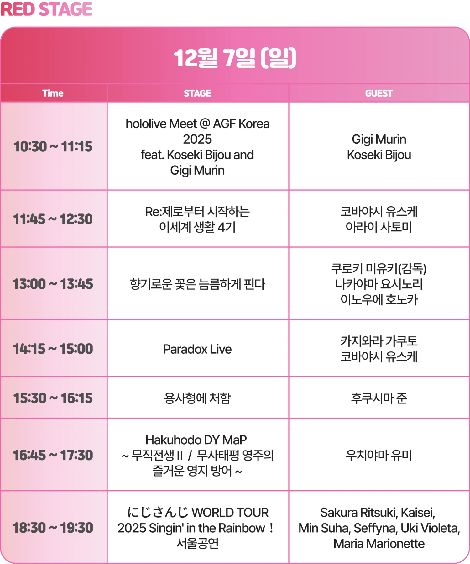 AGF 2025 Red Stage, Blue Stage 정보