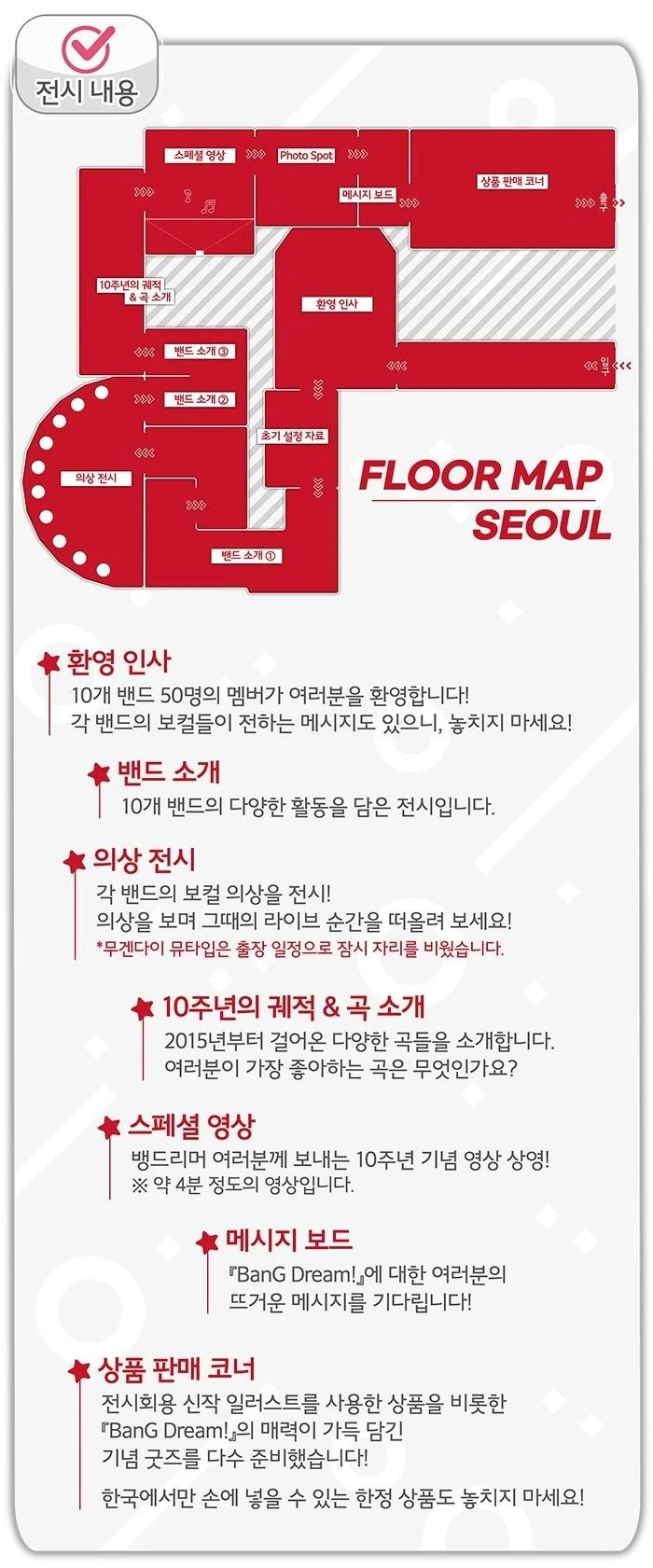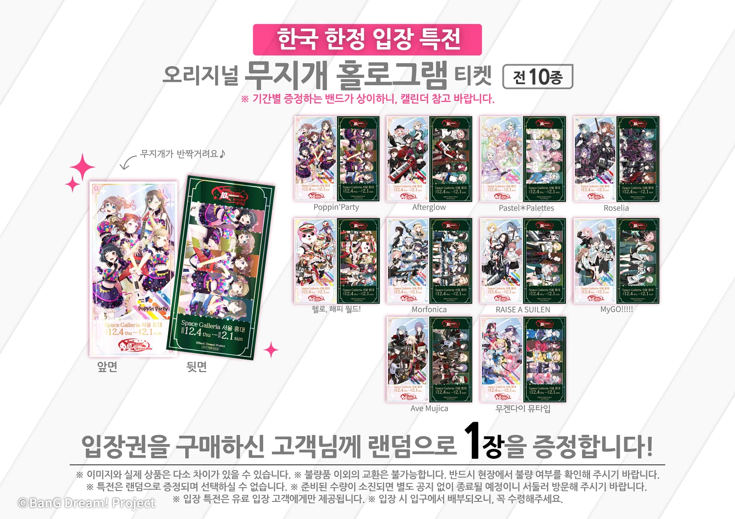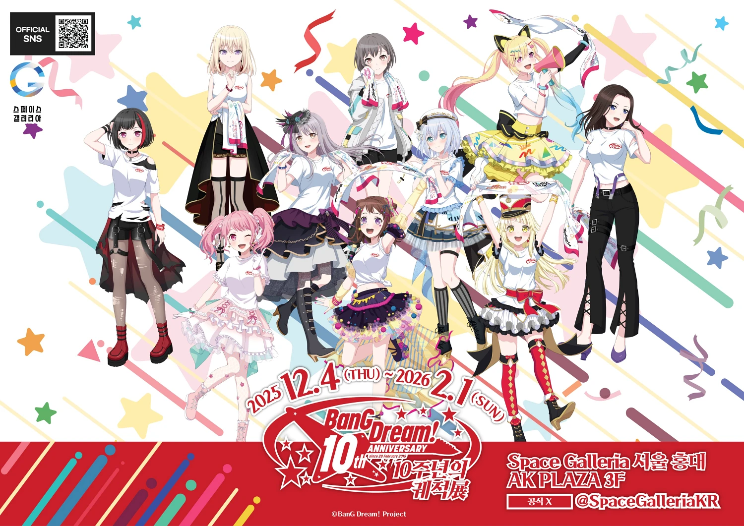 뱅드림!의 10주년 기념 전시회인 ‘BanG Dream! 10주년의 궤적展’을 오는 2025년 12월 4일부터 2026년 2월 1일까지 약 3개월간 서울 홍대에 위치한 ‘스페이스 갤러리아(Space Galleria)’에서 개최한다고 공개했습니다. 이번 전시회는 ‘뱅드림!’ 프로젝트의 지난 10년간의 발자취를 기념하는 자리로 다양한 밴드들의 자료들을 만나볼 수 있습니다