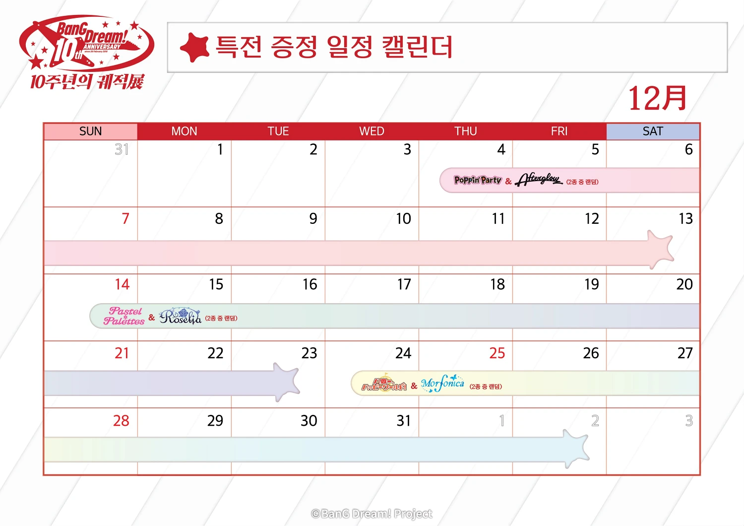 추가적으로 2025년 12월 4일부터 2026년 1월 18일까지 애니메이트 카페 홍대점과 잠실롯데점에서 BanG Dream! 10주년의 궤적展 X Gratte 개최되며 그래픽 라떼, 쿠키 메뉴와 코스터 특전을 만나볼 수 있습니다.