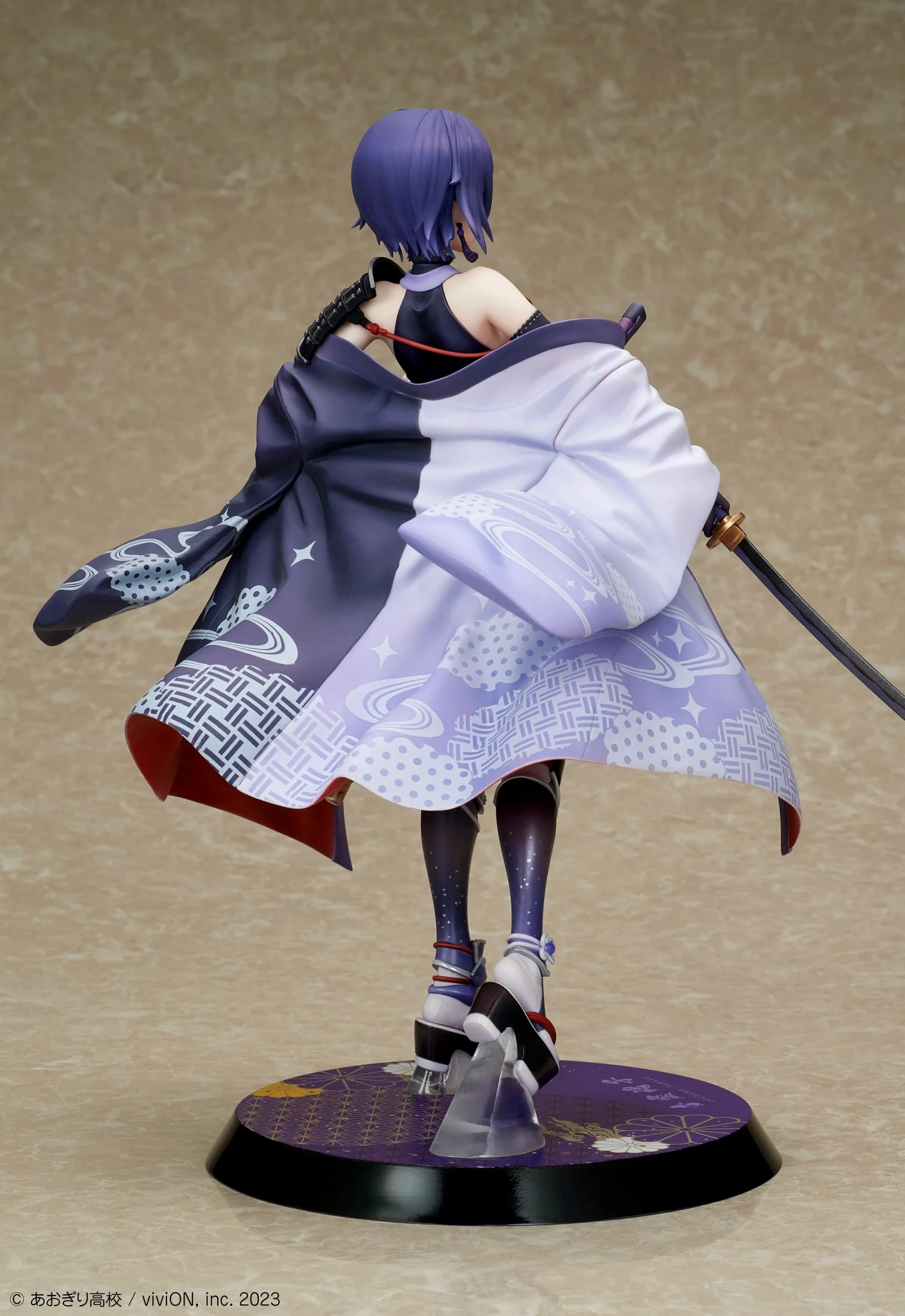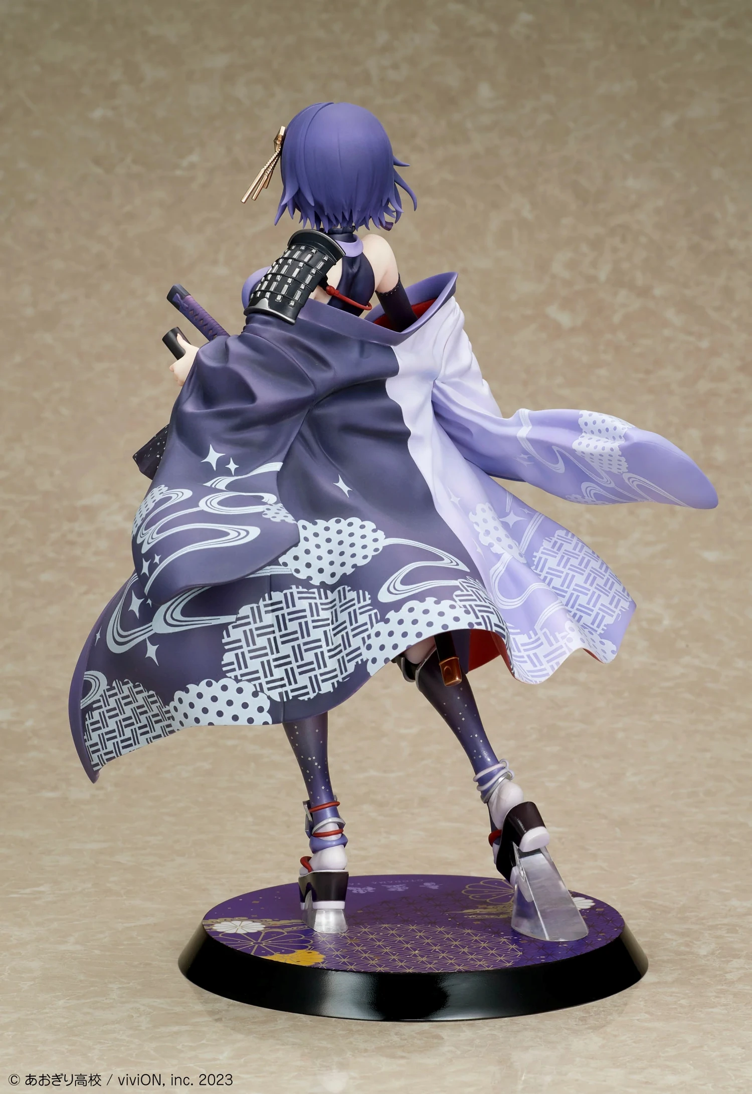 대좌에는 일본풍 무늬와 금색 장식을 더하고, 머리 장식이나 칼의 코등이 등 세부까지 세심한 조형. 어느 각도에서 보아도 즐길 수 있는 정성이 가득 담긴 완성도로 되어 있습니다.