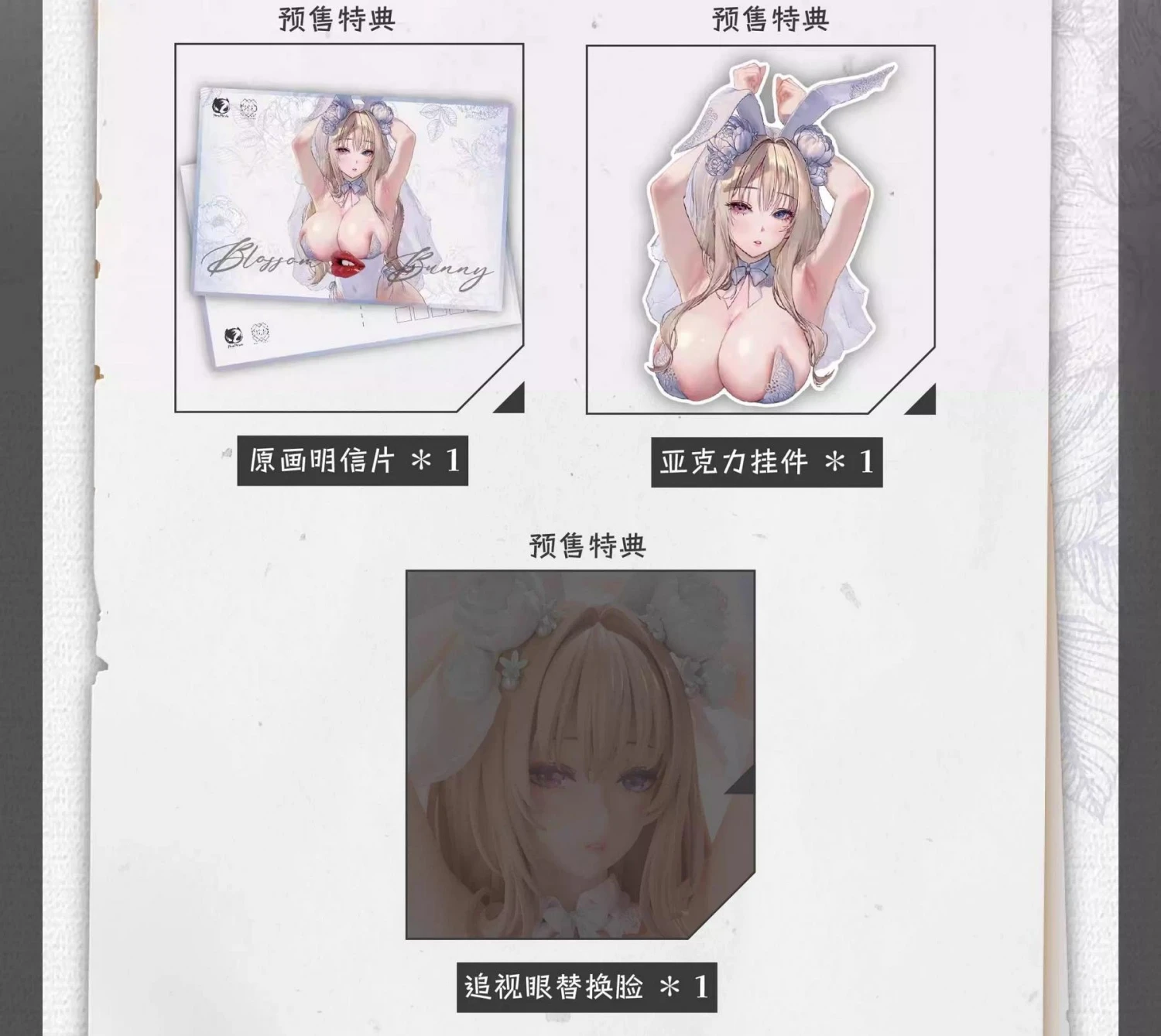 예약 구매 특전 : 아크릴 홀더, 원하 엽서, 표정 교체 파츠