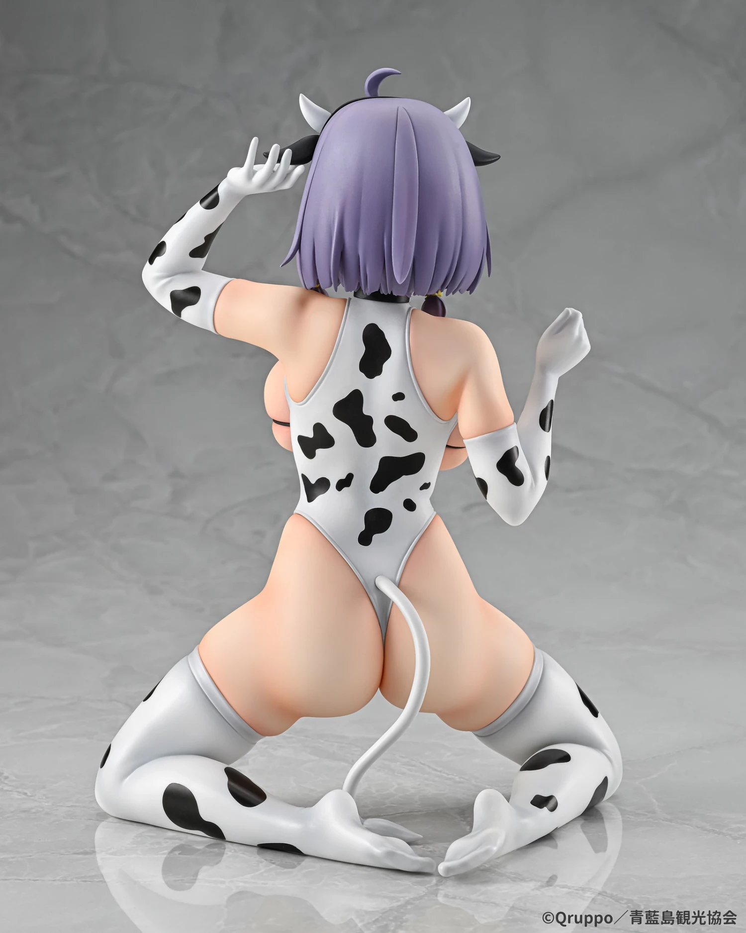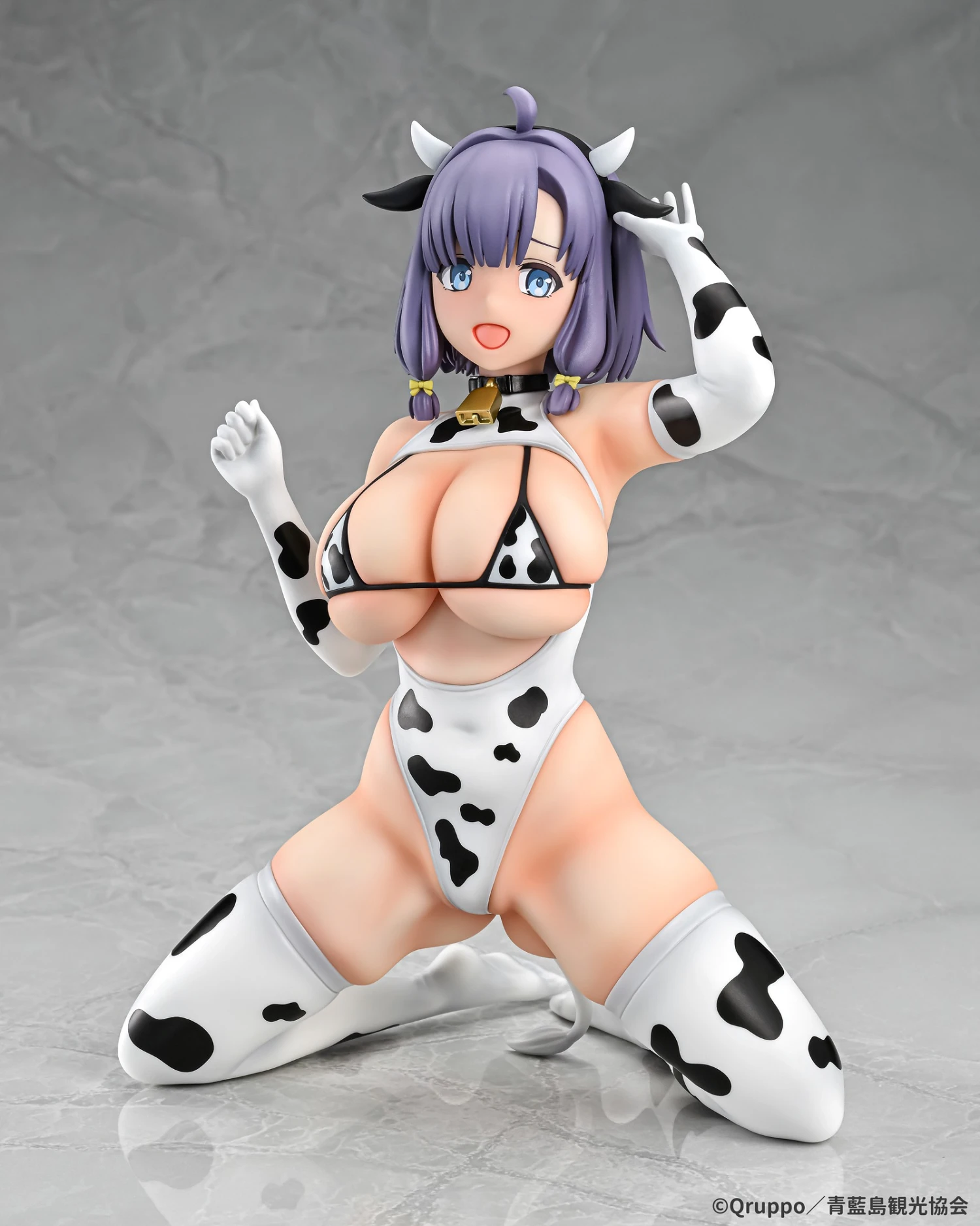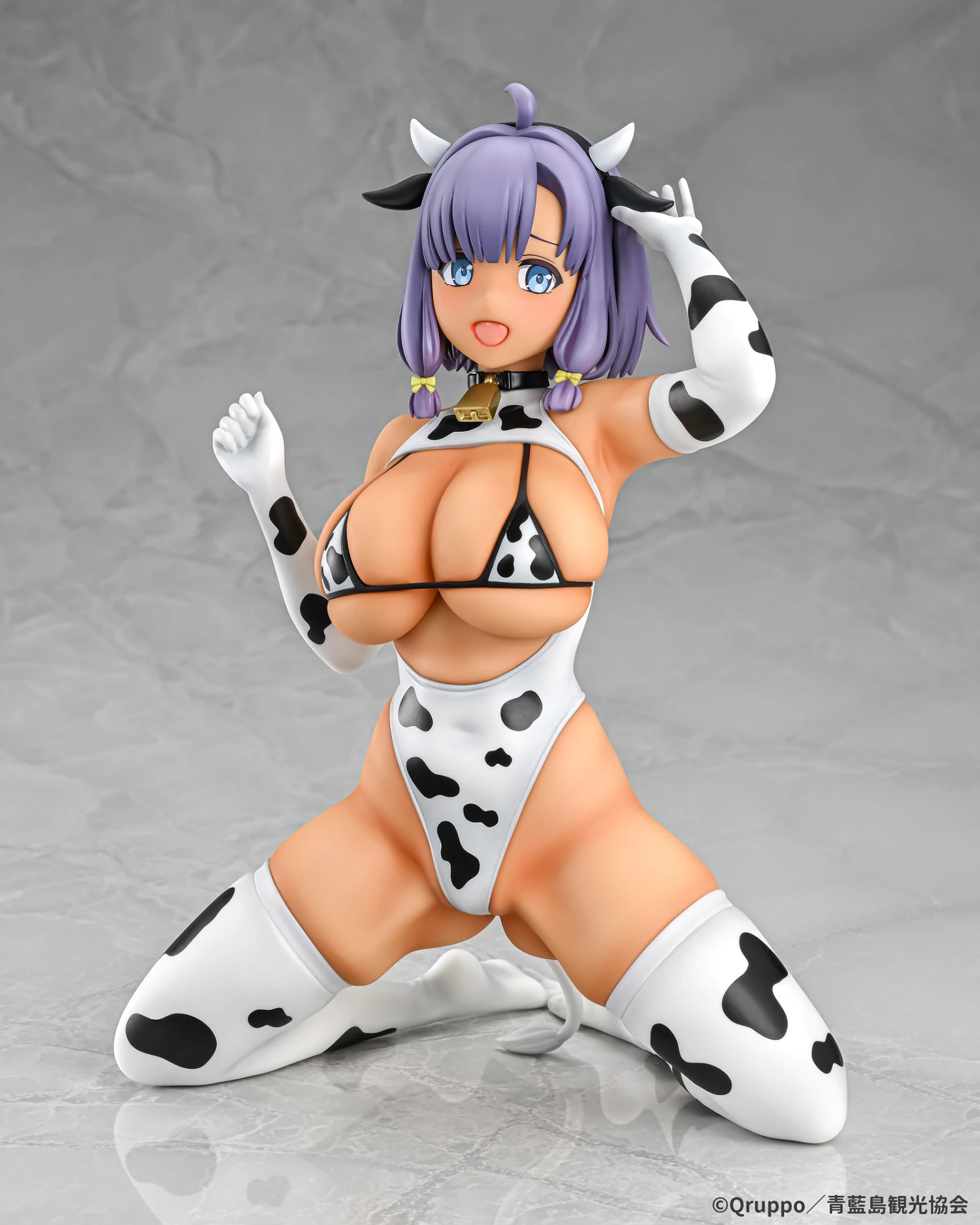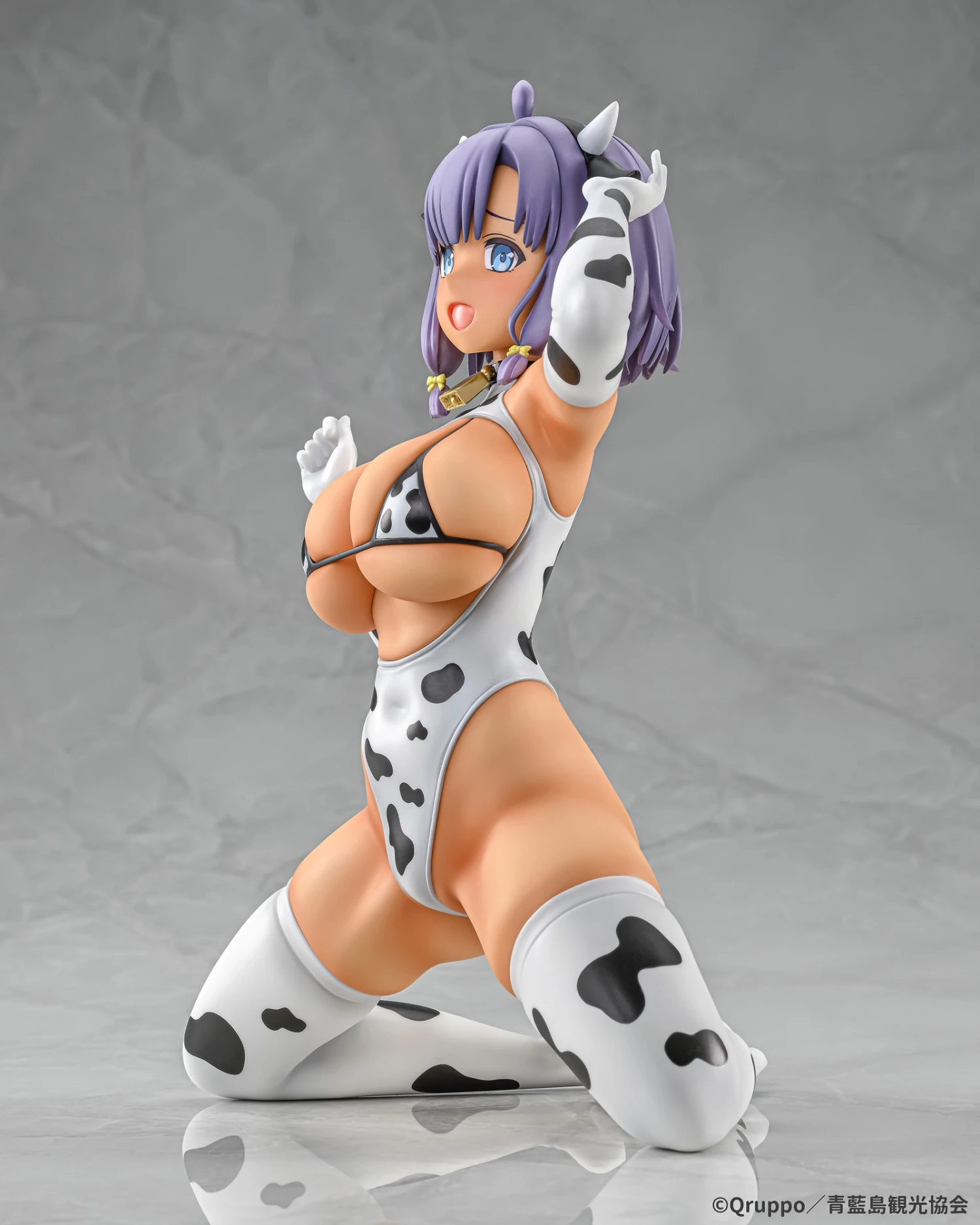 젖소무늬 코스튬을 착용한 모습으로, 수영복에 조여진 큰 가슴과 엉덩이에 파고드는 부드러운 조형이 매력적입니다. 건강하고 탄력을 느낄 수 있는 육감적인 표현은 1/5 스케일 특유의 볼륨감과 어우러져 볼거리를 제공합니다.