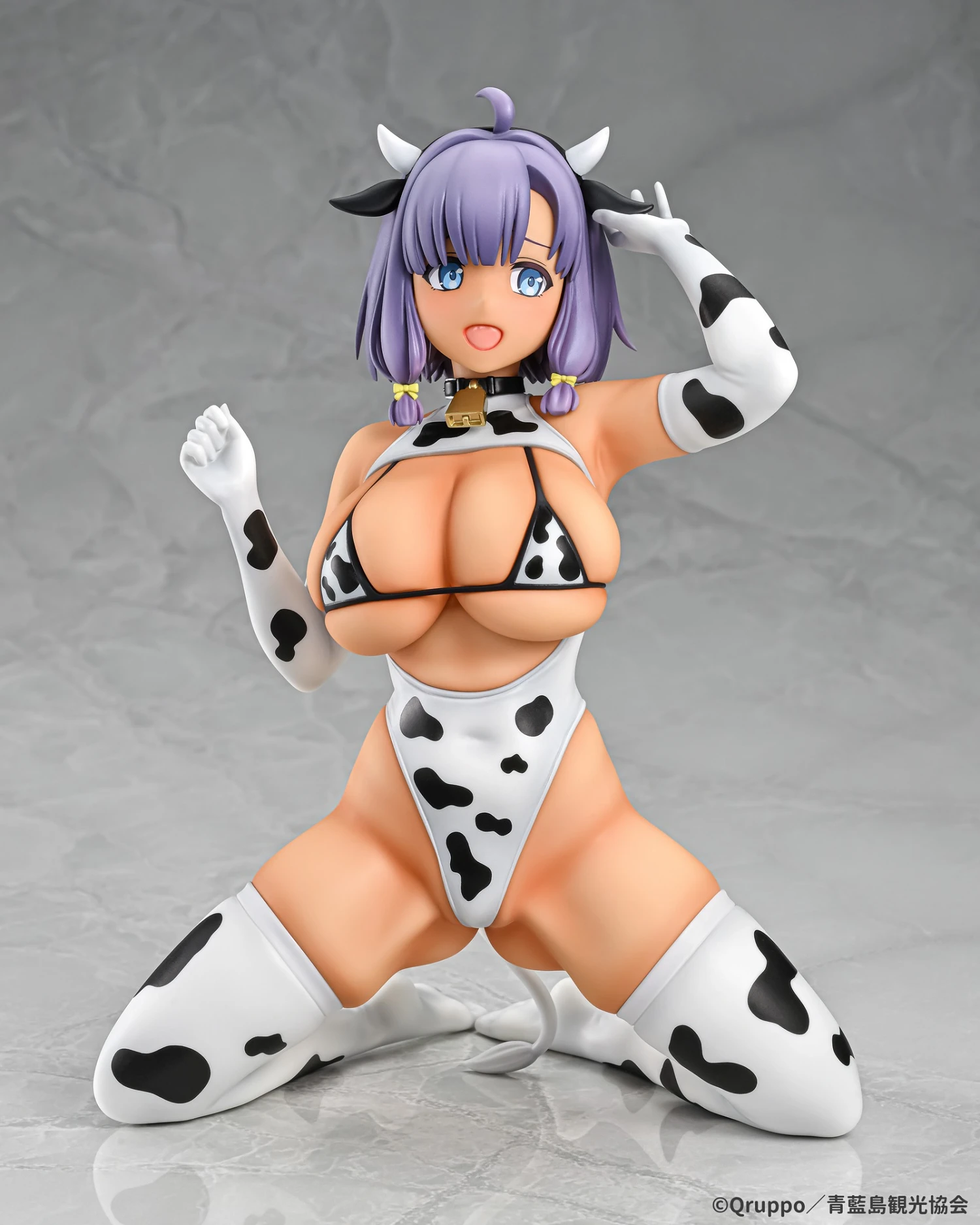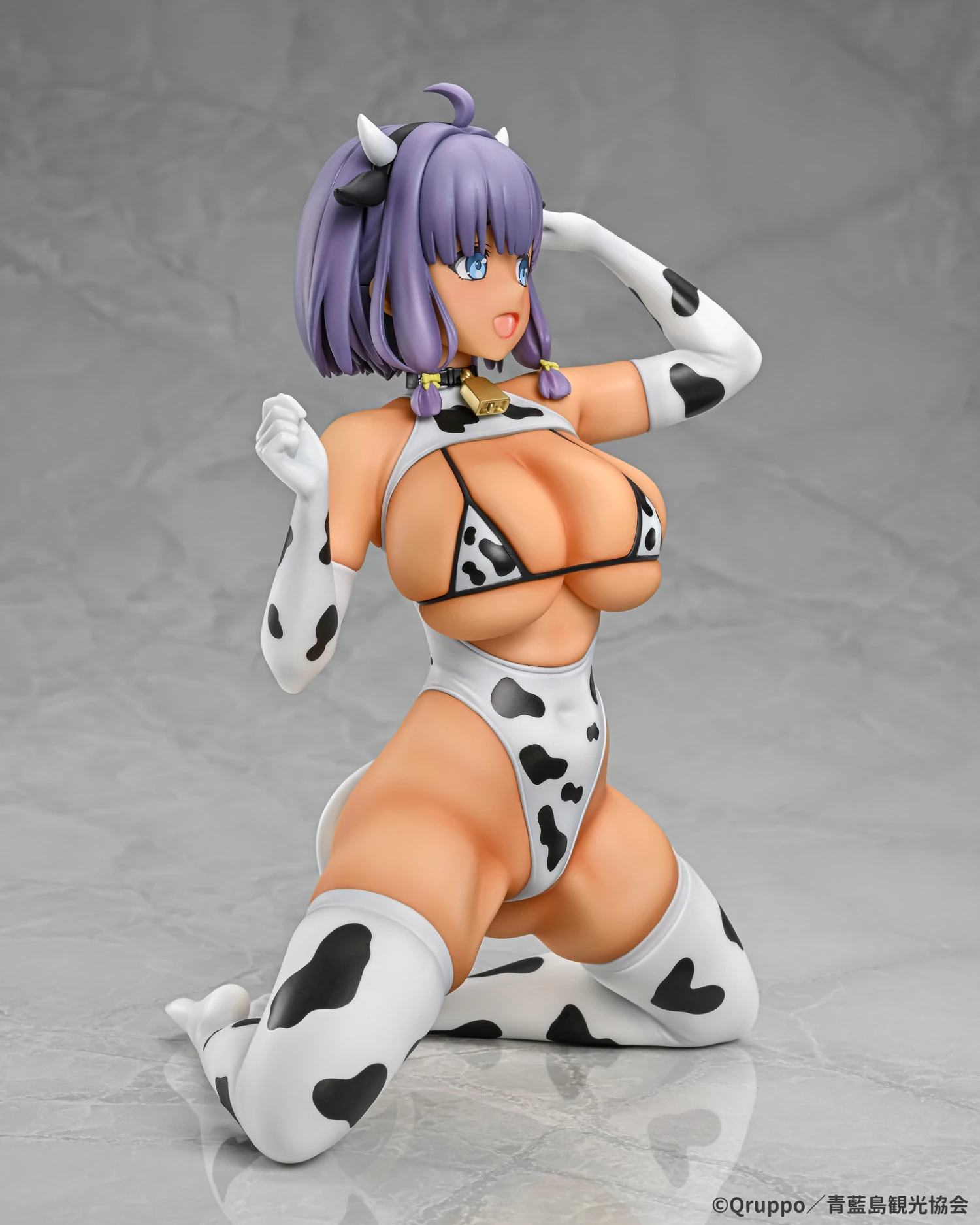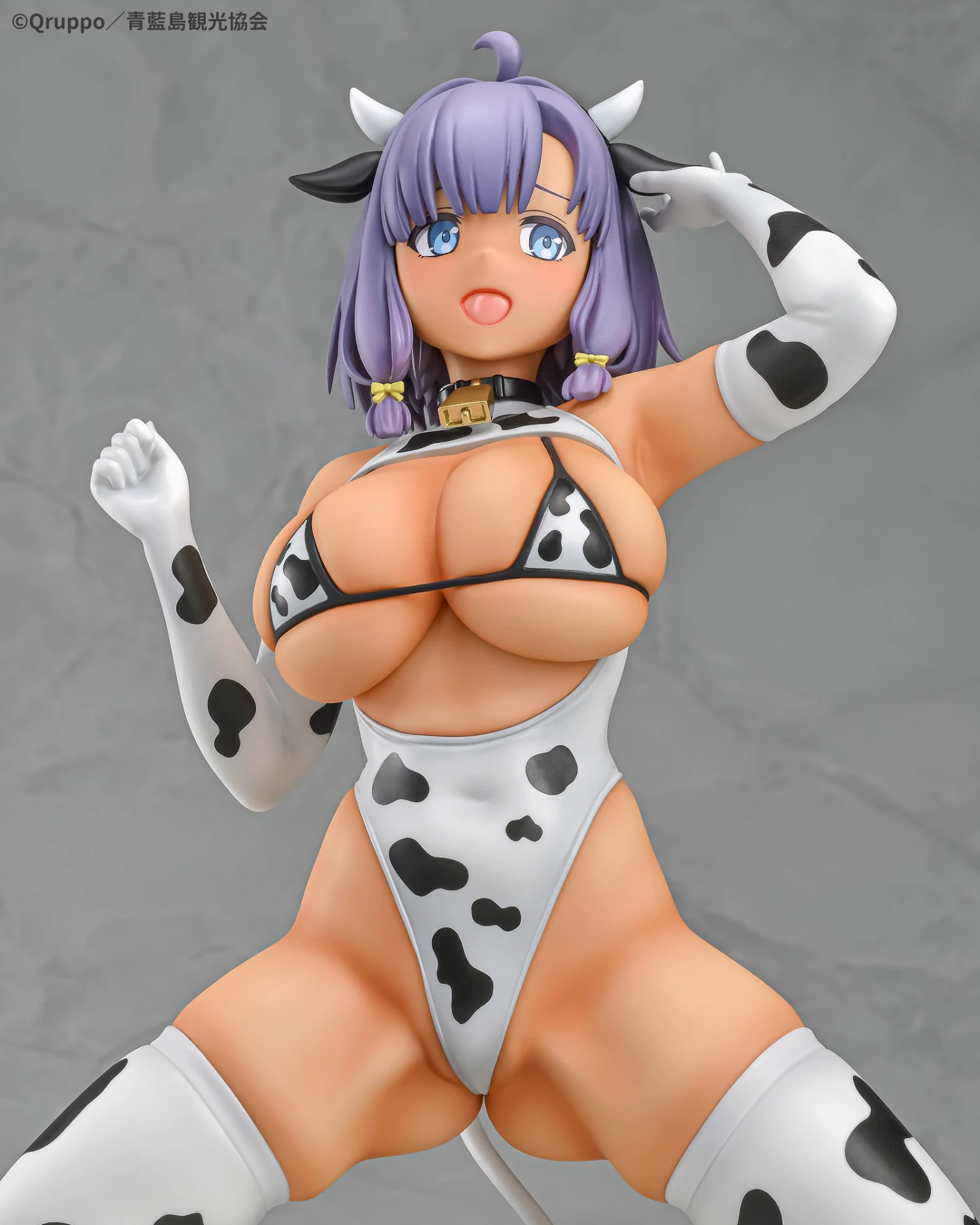 젖소무늬 코스튬을 착용한 모습으로, 수영복에 조여진 큰 가슴과 엉덩이에 파고드는 부드러운 조형이 매력적입니다. 건강하고 탄력을 느낄 수 있는 육감적인 표현은 1/5 스케일 특유의 볼륨감과 어우러져 볼거리를 제공합니다.