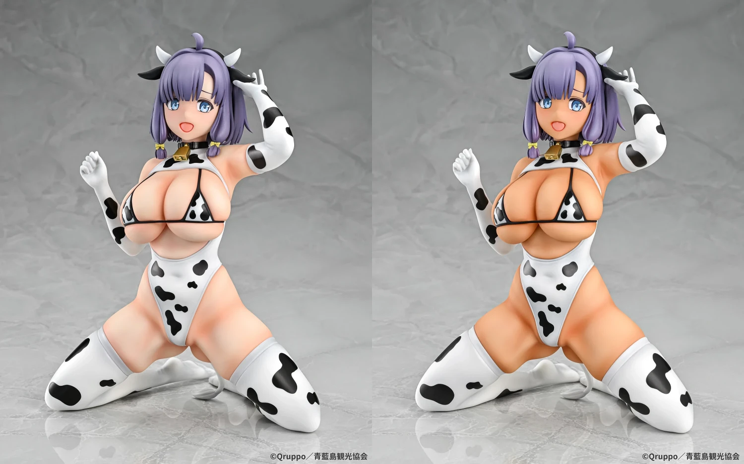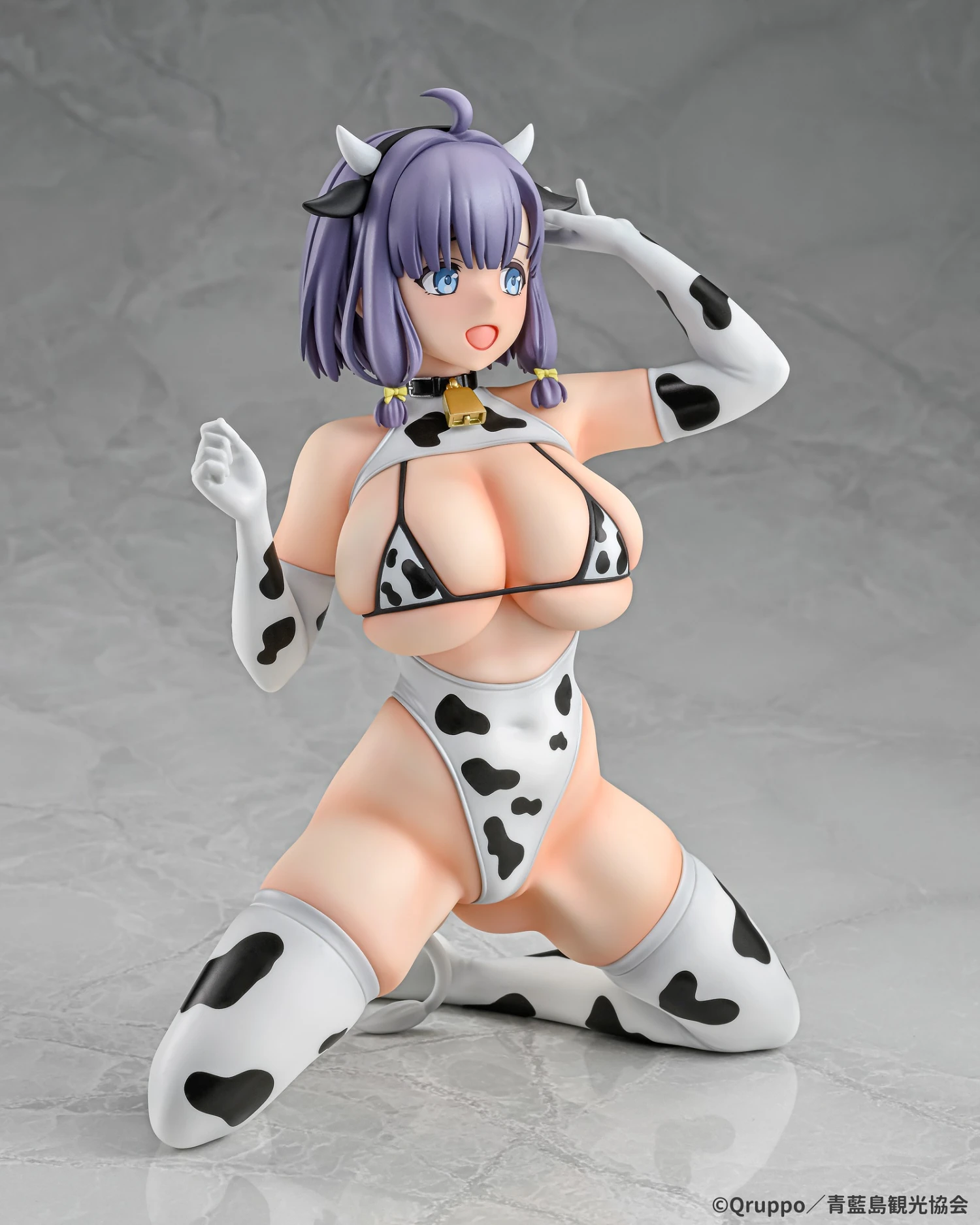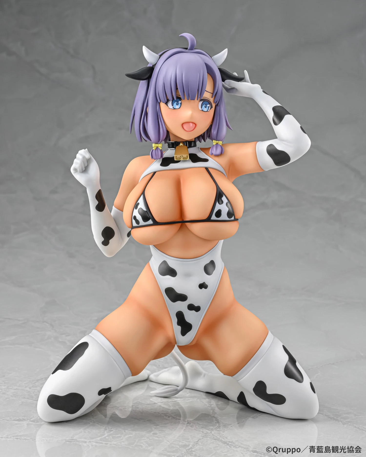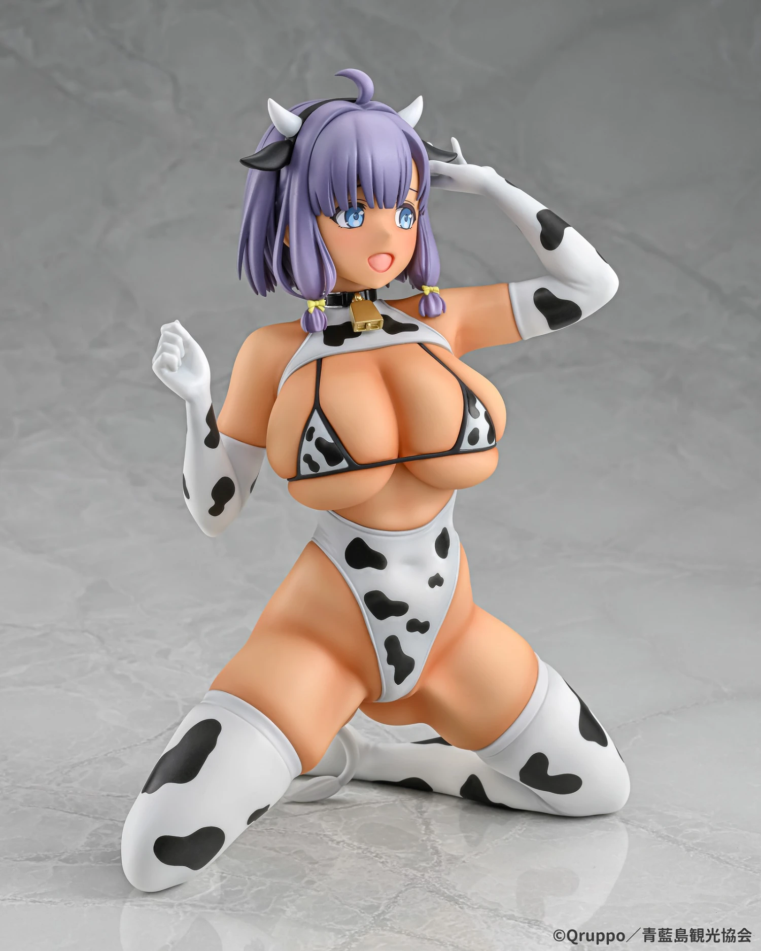 젖소무늬 코스튬을 착용한 모습으로, 수영복에 조여진 큰 가슴과 엉덩이에 파고드는 부드러운 조형이 매력적입니다. 건강하고 탄력을 느낄 수 있는 육감적인 표현은 1/5 스케일 특유의 볼륨감과 어우러져 볼거리를 제공합니다.