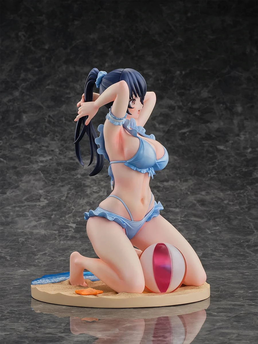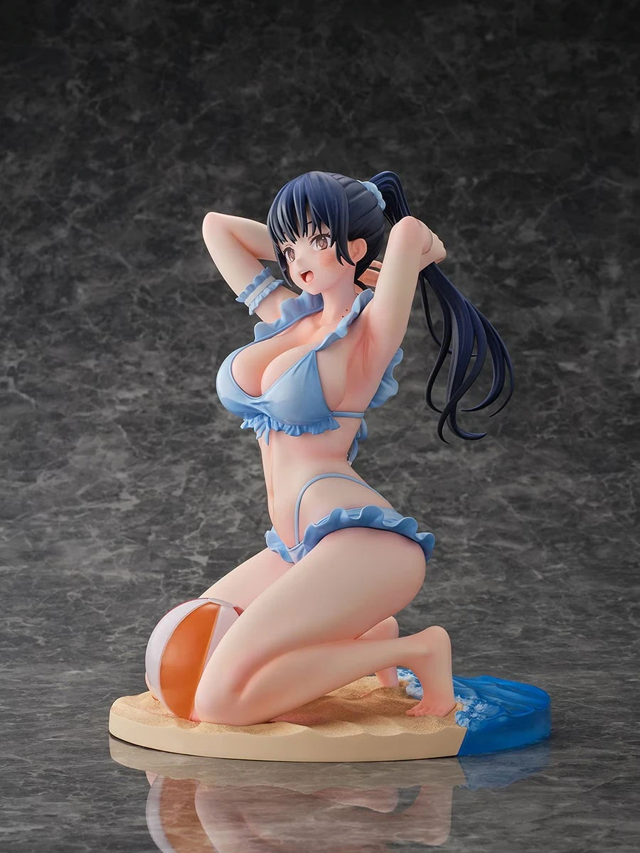 프릴을 장식한 선명하고 윤기 있는 파스텔 블루의 수영복이, 해변에서 들떠 떠드는 그녀의 건강한 아름다움을 돋보이게 합니다. 투명감 있는 비치볼, 파도가 치는 물가를 재현한 대좌 등, 세부까지 질감을 추구했습니다.