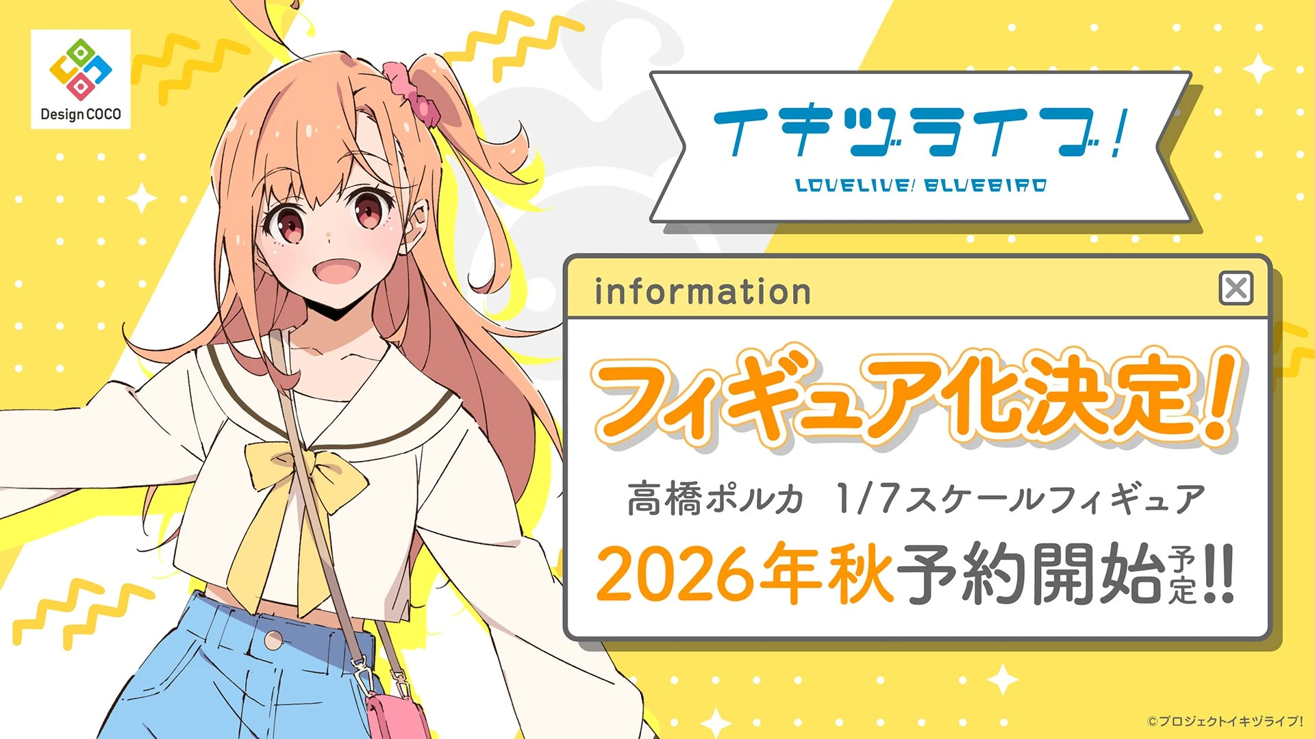 제조사 디자인 코코(Design COCO)가 공식 SNS 채널을 통해 ‘이키즈라이브! LOVELIVE! BLUEBIRD’에 등장하는 캐릭터 ‘타카하시 폴카’의 1/7 스케일 피규어화가 결정되었다는 소식을 밝혔다.