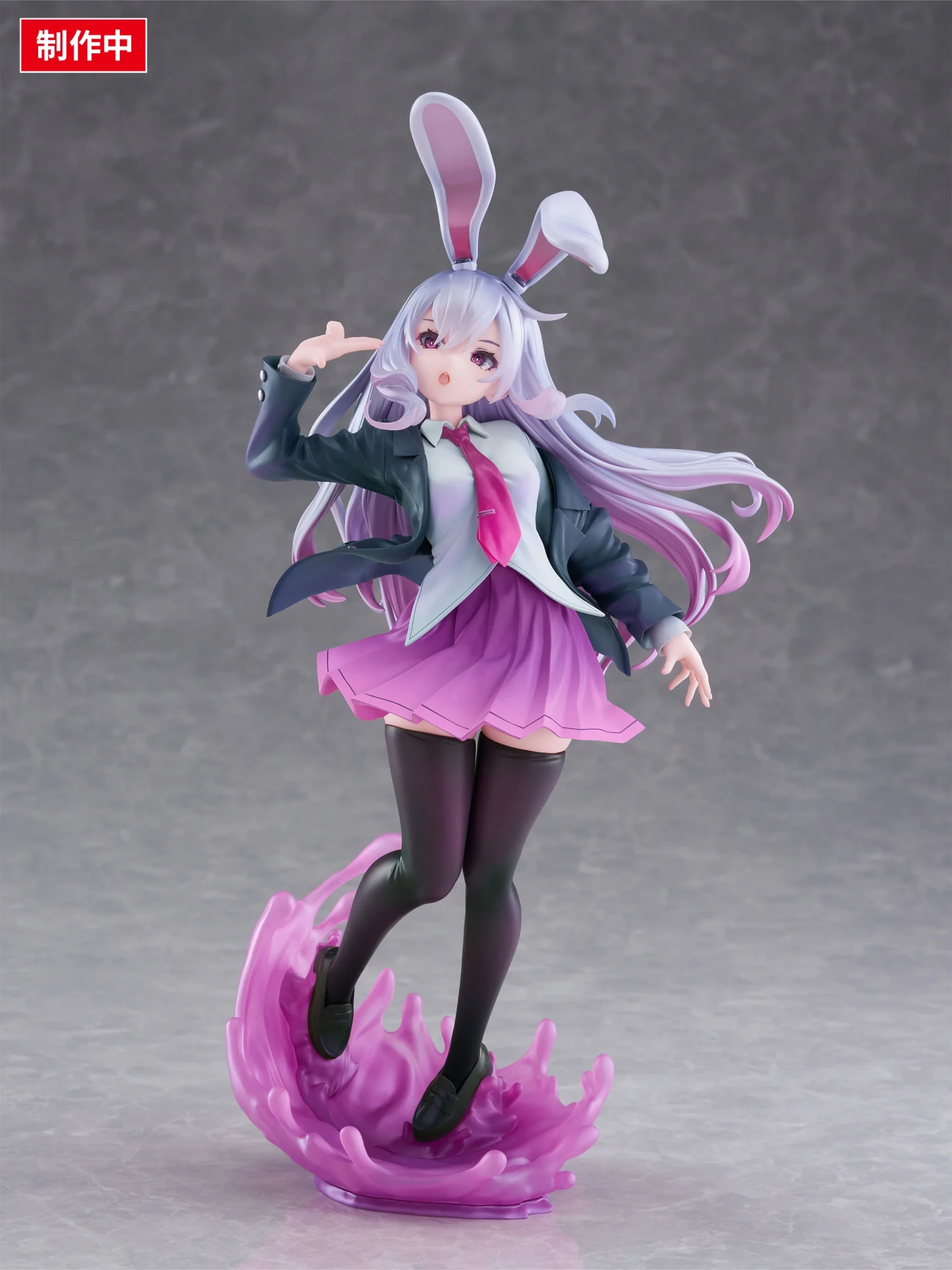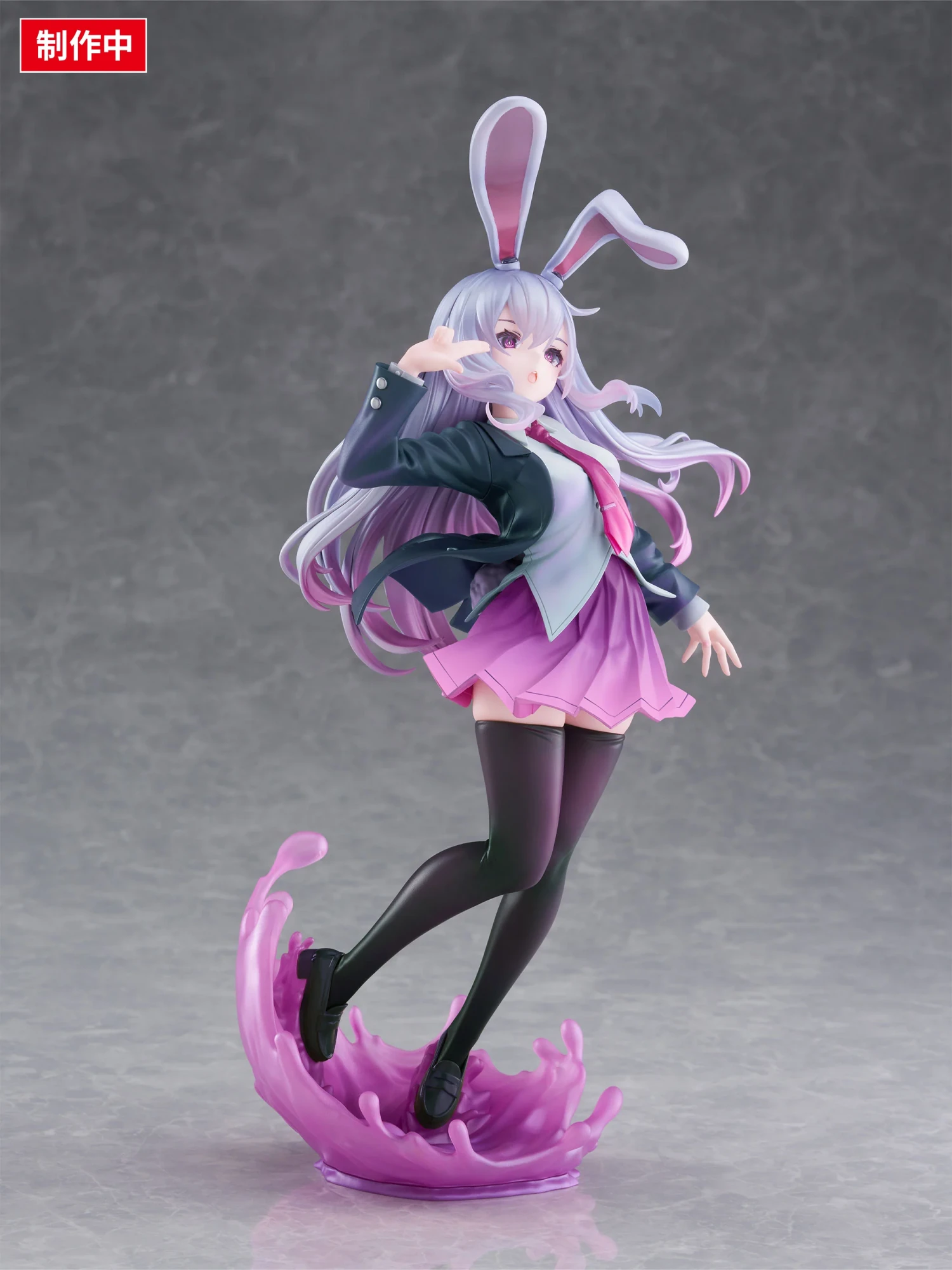 원본 일러스트의 역광 표현을 굳이 그대로 재현하는 것이 아니라, 메인 컬러인 강렬한 「쇼킹 핑크」를 피규어 전체에 녹여냄으로써, 입체물로서의 시각적 매력과 세계관을 양립시켰습니다. 흩날리는 머리카락의 메탈릭 도색과, 대좌에 겹쳐 칠한 펄 도색이 어우러져, 보는 각도에 따라 다채로운 빛을 발하는 마감이 되었습니다.