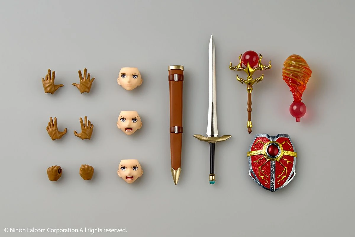 트레이드 마크인 붉은 머리와 경장 아머, 검과 방패, 마법 지팡이 등의 장비를 실재감 있는 디테일을 더해 재현했습니다. 카이요도가 독자 개발한 가동 조인트를 각 관절에 배치하여, 스마트한 프로포션을 무너뜨리지 않으면서도 폭넓은 액션 포즈가 가능합니다.