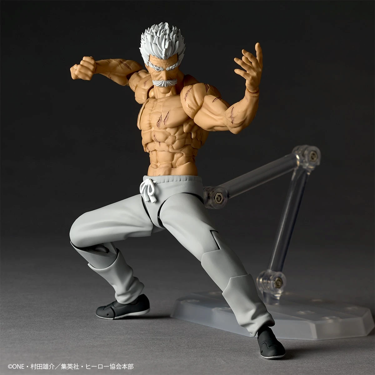 험악한 표정의 교체용 페이스 4종이나 날카롭게 압축된 근육, 전신에 새겨진 역전의 흉터도 리얼한 조형으로 캐릭터를 표현.