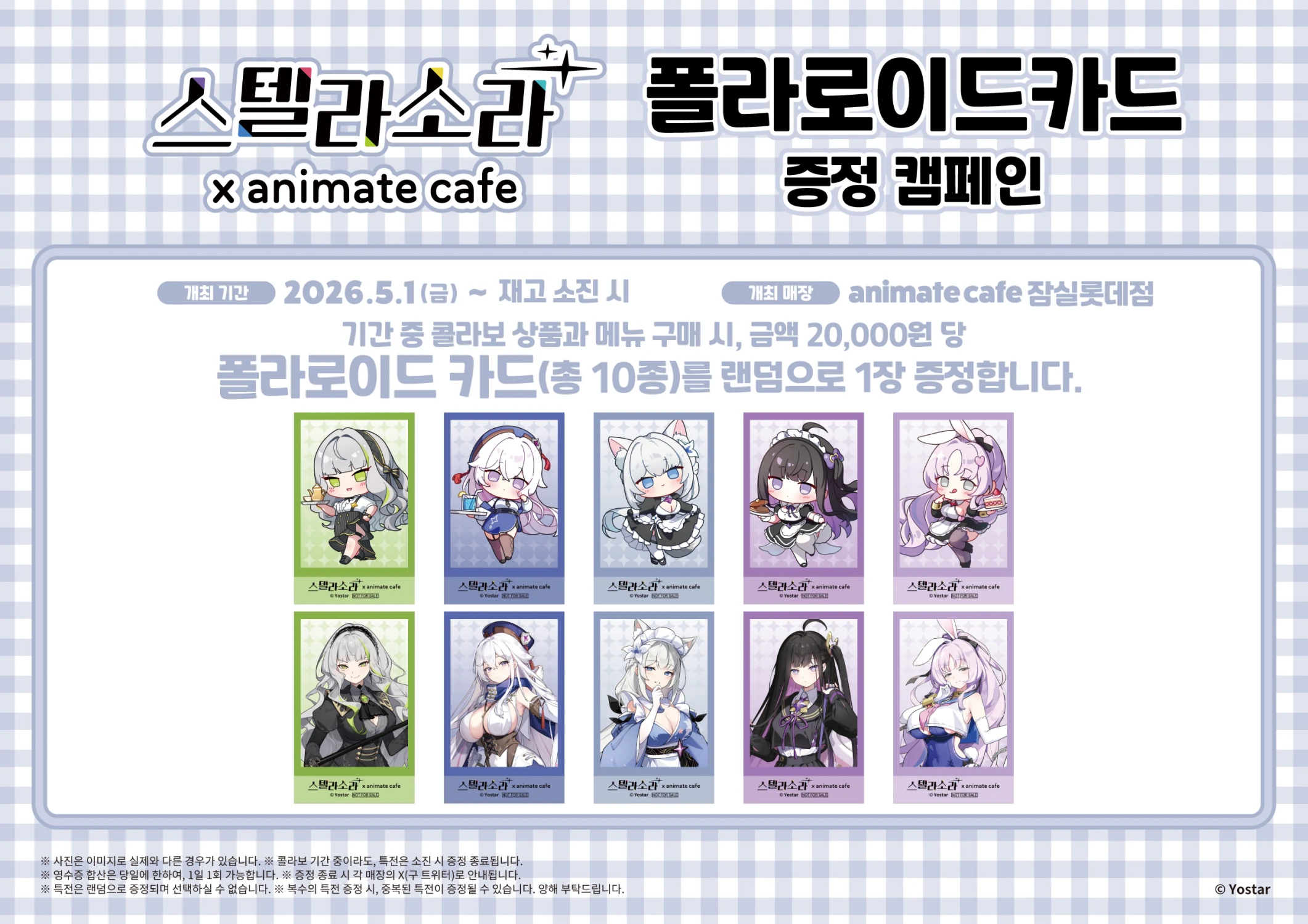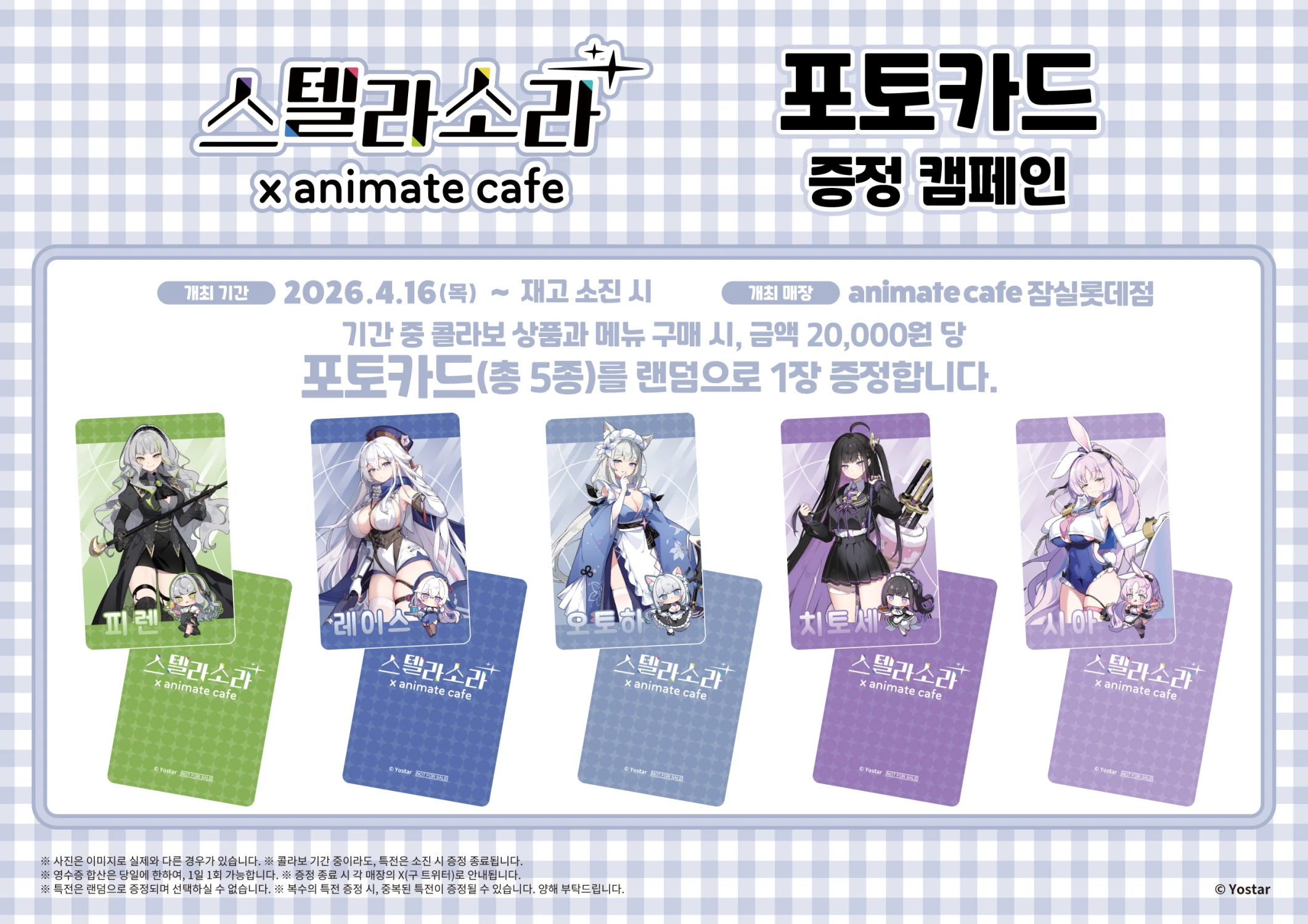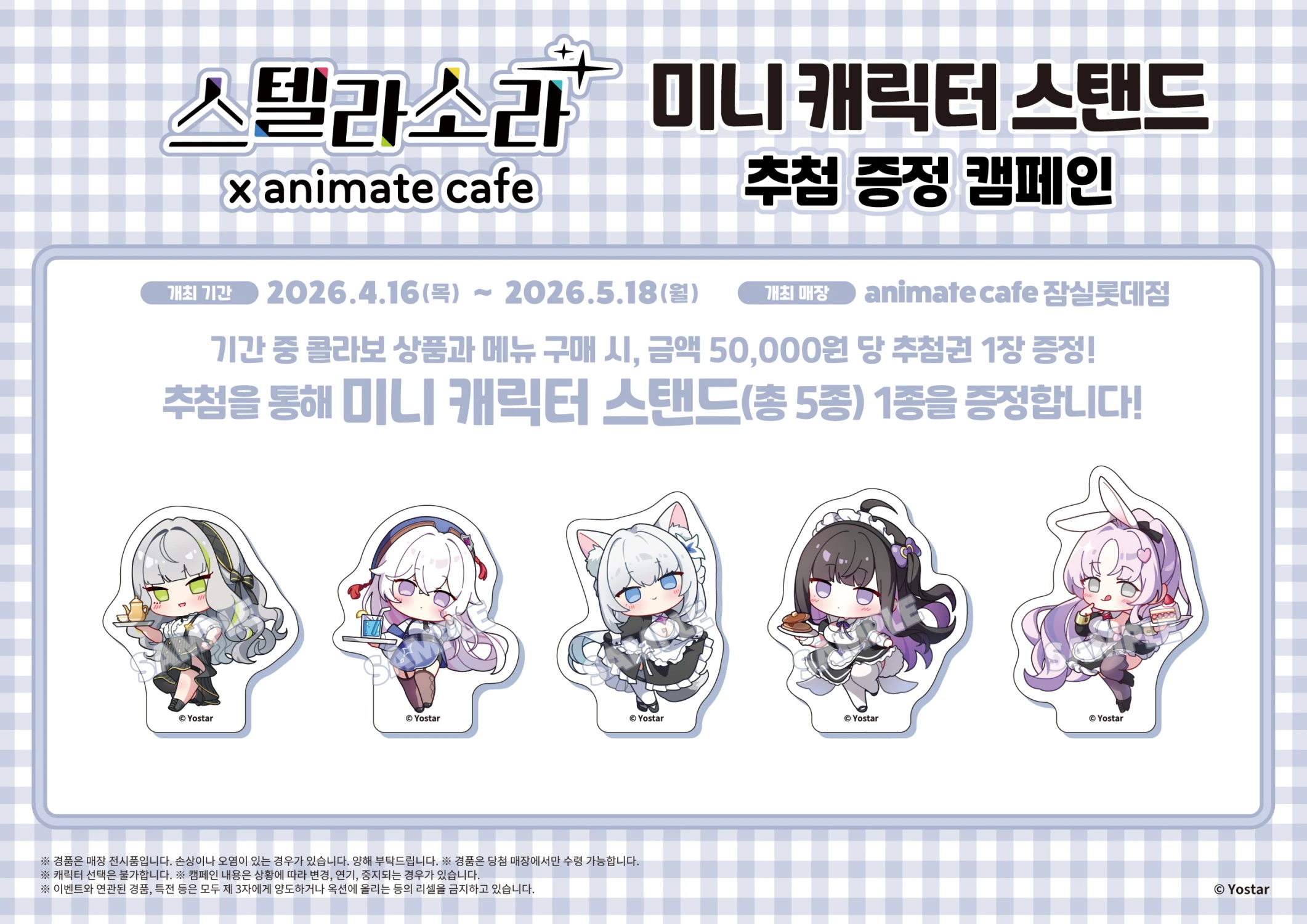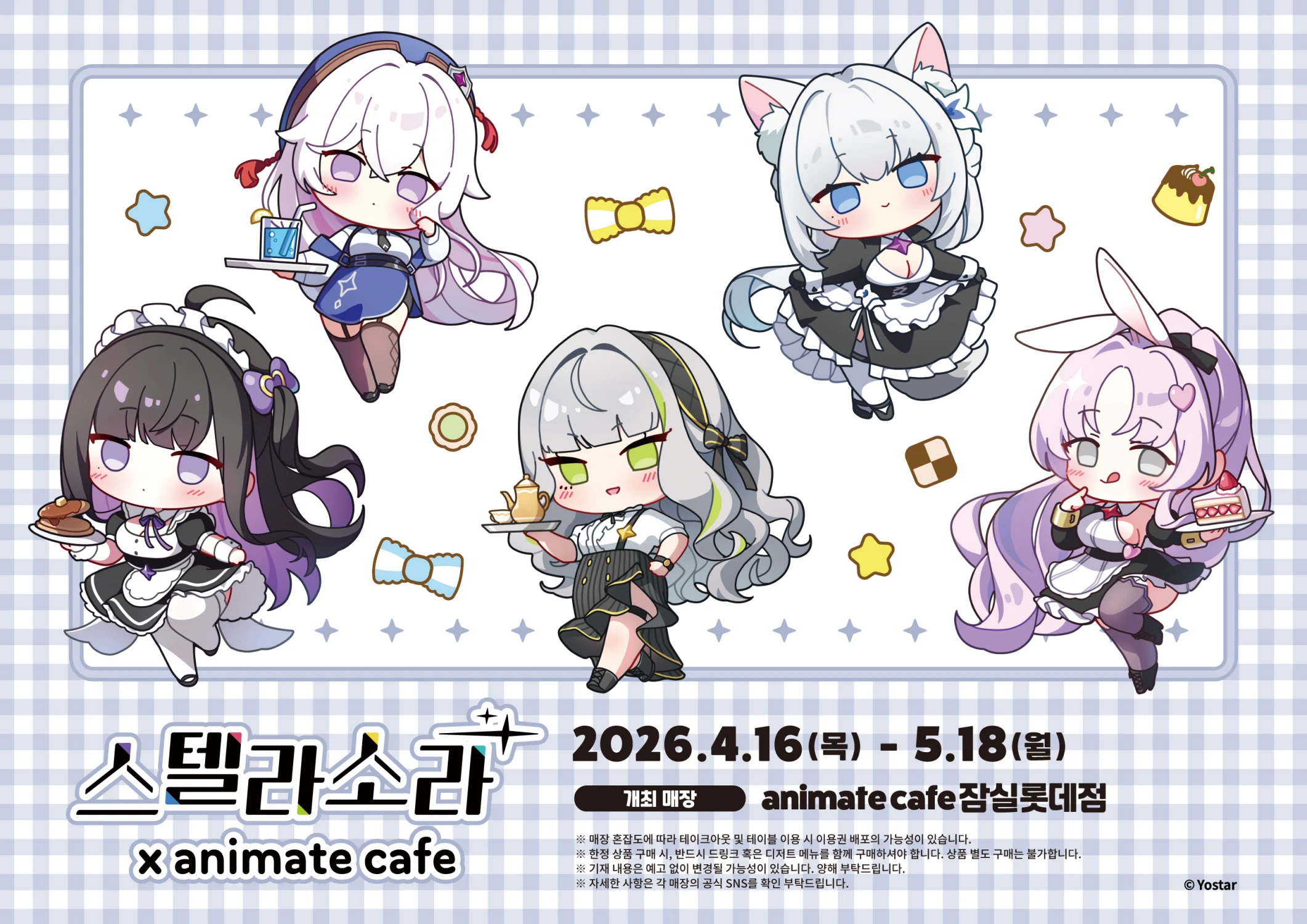 요스타가 개발,유통하는 서브컬쳐 모바일 게임 ‘스텔라 소라’가 ‘애니메이트 카페’와 특별한 콜라보레이션을 진행한다. 이번 행사는 2026년 4월 16일부터 5월 18일까지 애니메이트 카페 잠실 롯데점을 메인 팝업 스토어로 삼아 열린다.