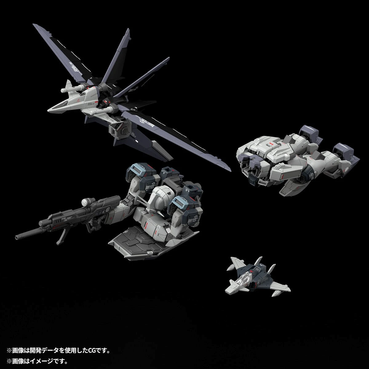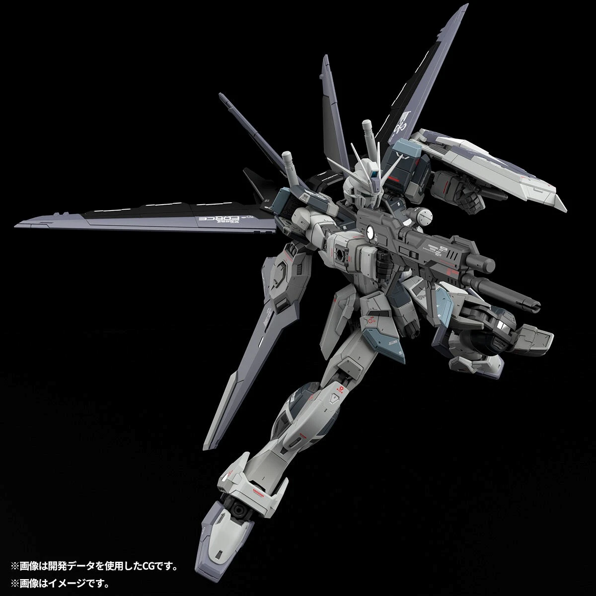 코어 스플렌더, 체스트 플라이어, 레그 플라이어, 포스 실루엣의 합체 기믹에 의해 MS 형태를 재현. RG의 실기 고증으로서, 포스 실루엣을 「항공기」로 파악하여, 기믹, 디테일, 질감을 연출. 윙은 후방으로 접기가 가능.