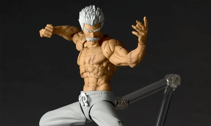 험악한 표정의 교체용 페이스 4종이나 날카롭게 압축된 근육, 전신에 새겨진 역전의 흉터도 리얼한 조형으로 캐릭터를 표현.