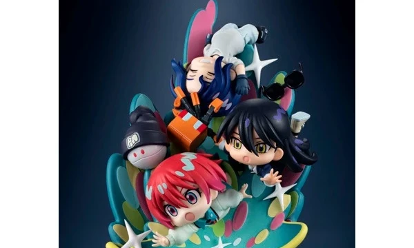 반짝반짝 빛나는 곳으로 뛰어드는 상황을 이미지화하여 아마테 유즈리하(마츄), 냐안, 슈우지 이토 3명을 입체화했습니다. 알록달록한 받침대에서 캐릭터들이 기세 좋게 금방이라도 튀어나올 것 같은 장면을 재현했습니다. 하로와 콘치, 냐안의 선글라스 등 소품 또한 세부까지 정교하게 제작했습니다.