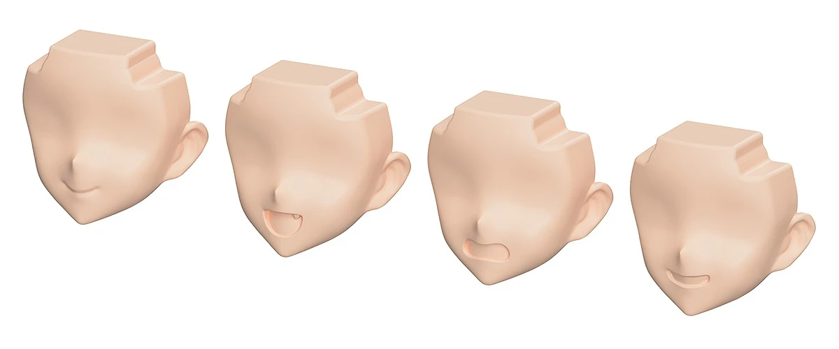 · 표정 파츠: 도색이 완료된 「미소 짓는 얼굴」 「수줍어하는 얼굴」 「유혹하는 얼굴」 및 「우는 얼굴」은 미도색 파츠와 데칼이 부속