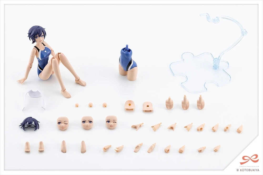 【교체용 바디 파츠】 서 있는 포즈용 상반신 파츠 외에, 「체육 앉기용 바디」가 부속됩니다. 풀사이드에서 휴식하고 있는 모습 등 폭넓은 시추에이션에 사용 가능. 목 파츠는 「일반 타입」 외에 목을 「뒤로 젖힌 타입」이 부속되어 있어, 교체를 통해 표현의 폭이 넓어집니다. 서 있는 상태에서 뒤로 젖힌 목을 사용하면 엎드린 자세로 만들 수도 있습니다. 등 맨살 파츠는 2종 모두 전시용 베이스에 대응하는 3mm 구멍이 뚫려있는 타입과 외형을 중시하여 3mm 구멍이 뚫려있지 않은 타입 2종류가 부속되어 있어 조립 시 취향에 맞는 사양을 선택하실 수 있습니다.