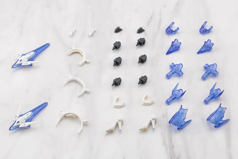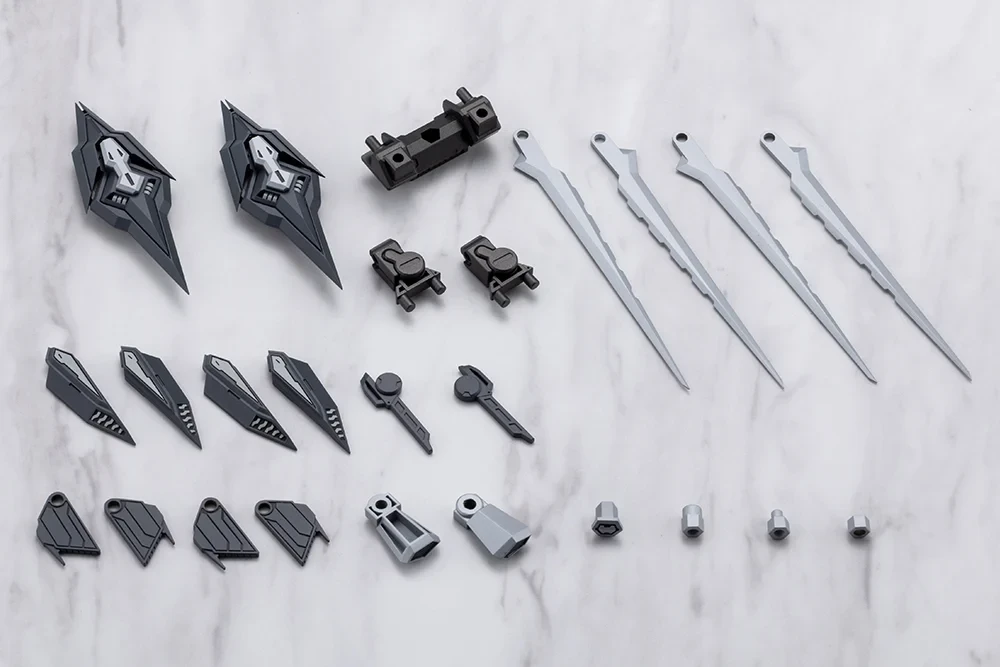 • 성형색(사출색)은 백팩 유닛이 건메탈, 윙 슬래시 유닛이 그레이, 테일 블레이드가 실버의 3색 성형입니다.