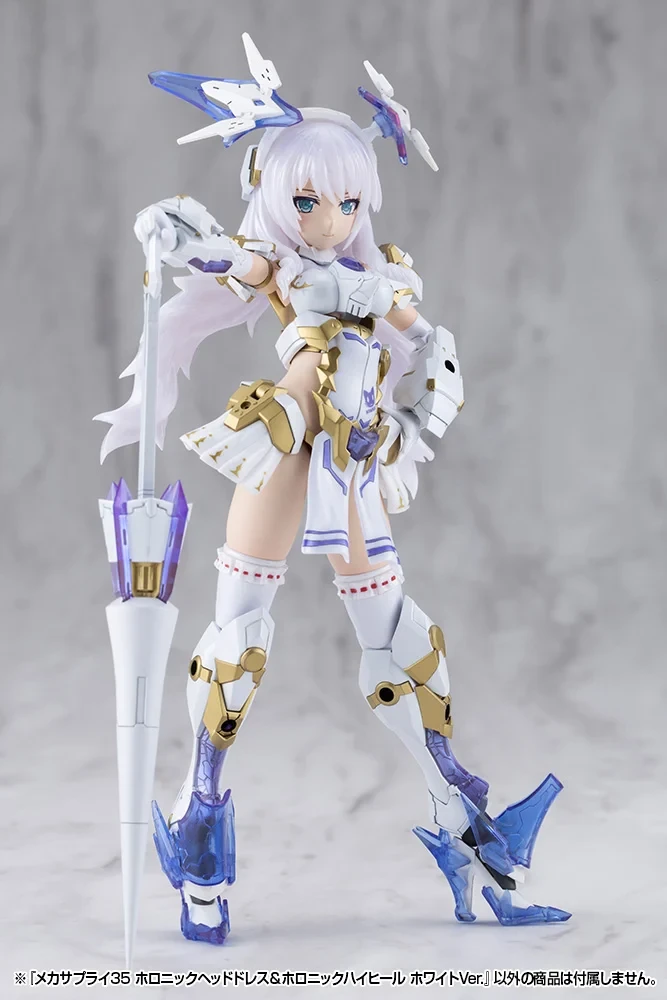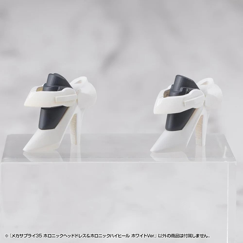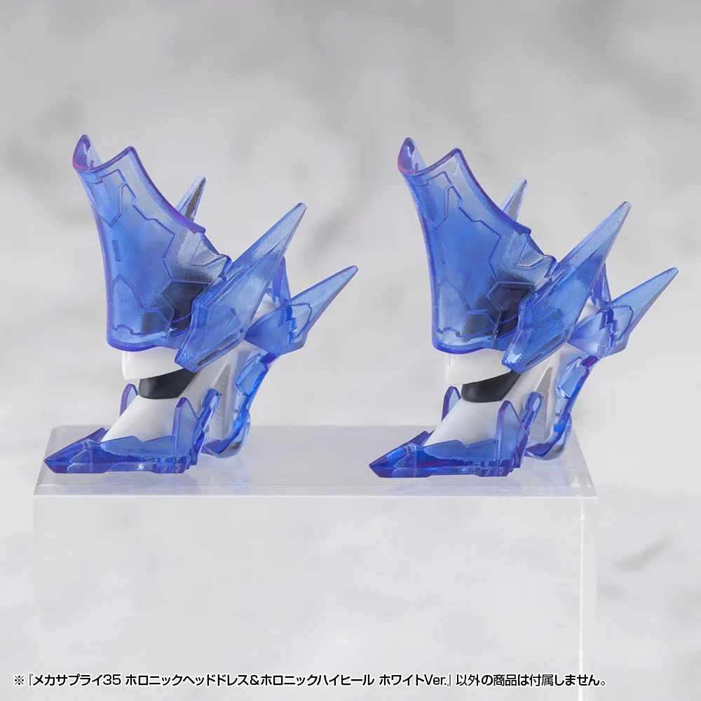 • 미소녀 캐릭터 프라모델을 위한 개조 파츠, ‘홀로닉 헤드 드레스’와 ‘홀로닉 하이힐’의 세트입니다. 각각 클리어 파츠를 효과적으로 배치하여, 캐릭터의 머리와 발끝을 아름답고 스타일리시하게 연출합니다.