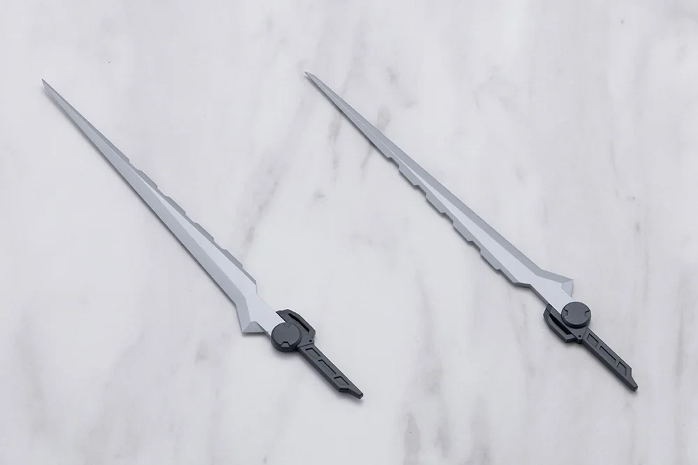 • 샤프너 모드 시의 테일 블레이드는 3mm 구멍으로 연결되어 있어, 분리하여 커스터마이즈 파츠로 사용할 수 있는 것 외에도, 부속된 그립에 연결하여 외날 장검으로 사용할 수 있습니다.